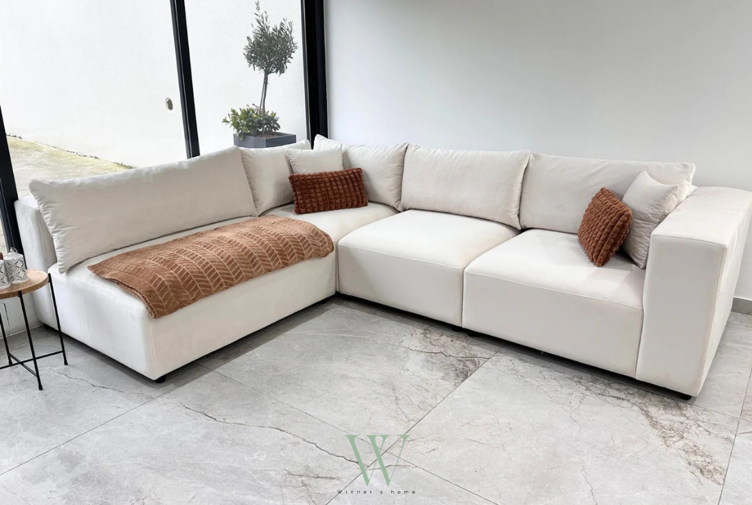 Apportez une note de raffinement et de confort à votre salon avec le canapé Azra. Habillé d’un velours blanc cassé d’une douceur incomparable, ce canapé modulable s’ajuste à vos besoins et à votre espace.