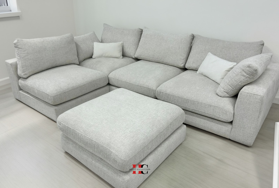 Profitez d'un confort élégant avec le Canapé JULIA en tissu Chenille. Ce canapé modulable est idéal pour un agencement personnalisé et le pouf inclus ajoute un espace de détente supplémentaire. Détendez vous dans le style avec ce canapé de qualité supérieure.