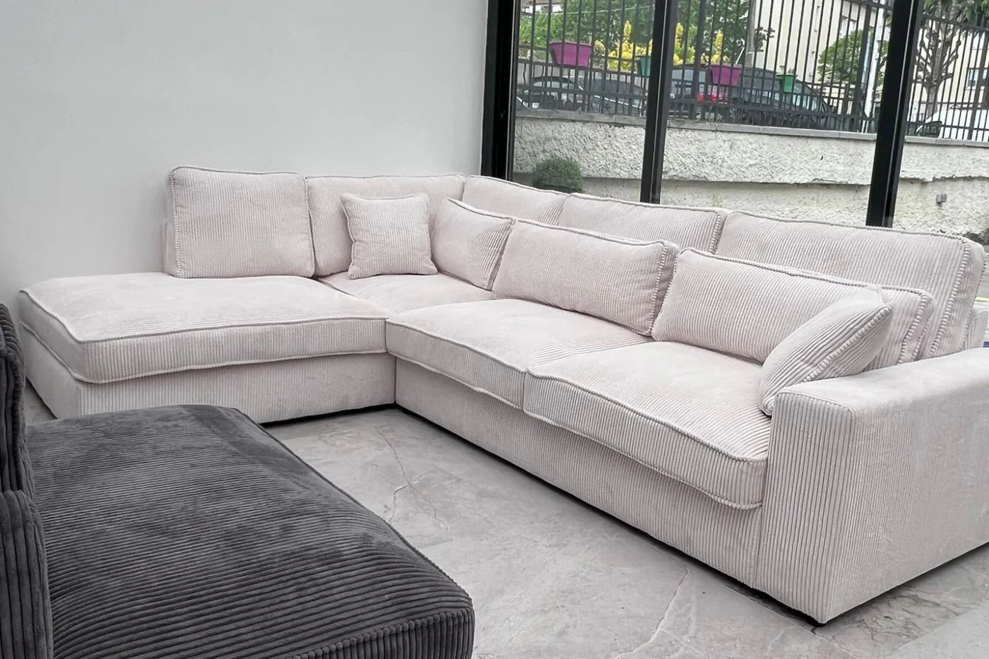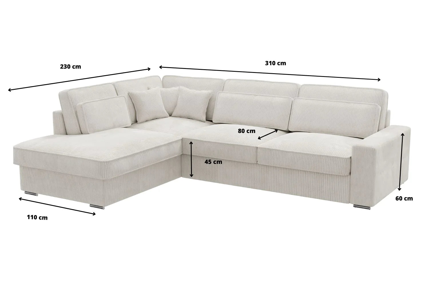 Avec sa finition en velours côtelé, il apportera une touche de texture et de raffinement à votre intérieur. Ce canapé d'angle est un ajout parfait pour créer un espace de détente confortable et chic dans votre salon.