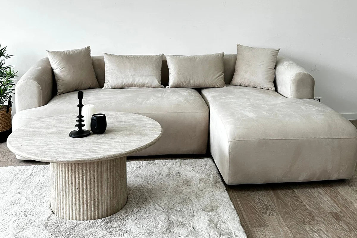 Avec sa finition en velours, il apportera une touche de texture et de raffinement à votre intérieur. Ce canapé d'angle est un ajout parfait pour créer un espace de détente confortable et chic dans votre salon.