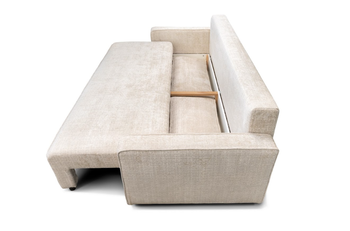 Aliez style et praticité avec ce canapé coffre convertible en tissu Marbella blanc cassé. Doux, résistant et élégant, il se transforme en un lit confortable pour vos invités, tout en s’intégrant parfaitement à tout type de décoration.