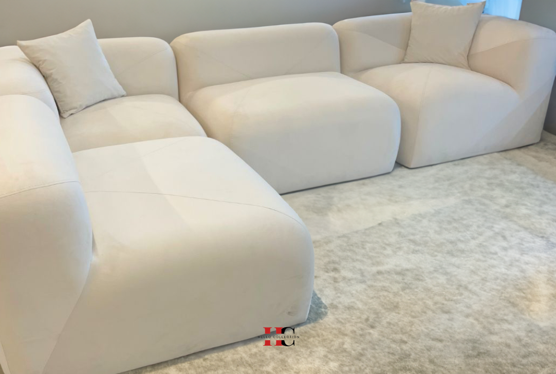 Le Canapé NUAGE est parfait pour transformer votre espace intérieur. Grâce à sa conception modulable unique en velours de qualité supérieure, vous bénéficiez d'une résistance exceptionnelle aux taches et à l'usure quotidienne.