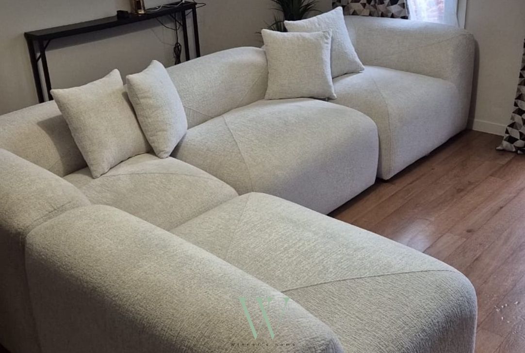Découvrez le Canapé NUAGE en tissu chenille. Il est tendance et confortable en tissu doux. Profitez de sa modularité pour adapter votre intérieur à vos besoins. Invite à la détente et à la relaxation !