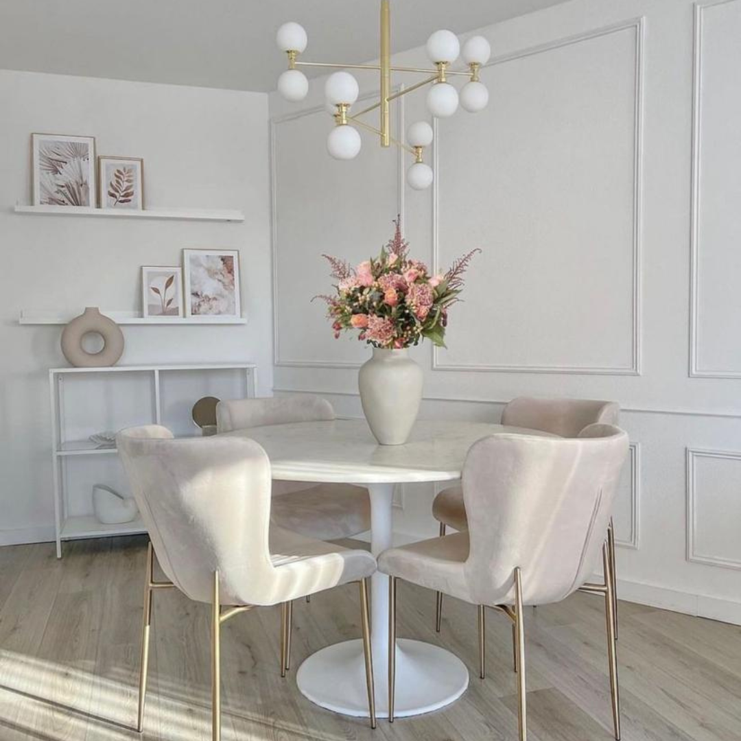 Les pieds en métal doré mat ajoutent une touche d'éclat subtile à ces chaises.