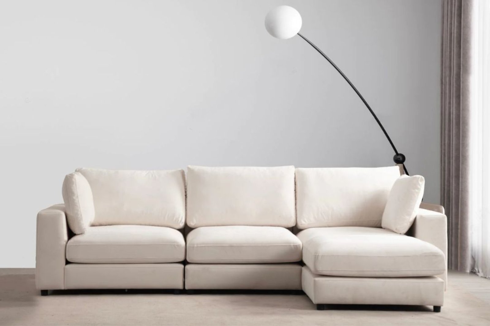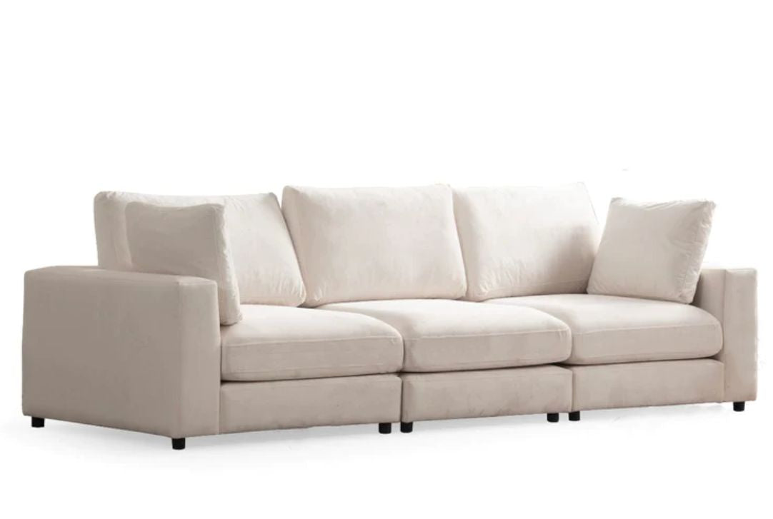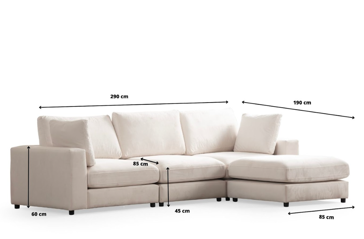 Le Canapé JULIA est parfait pour transformer votre espace intérieur. Grâce à sa conception modulable unique en velours de qualité supérieure, vous bénéficiez d'une résistance exceptionnelle aux taches et à l'usure quotidienne.