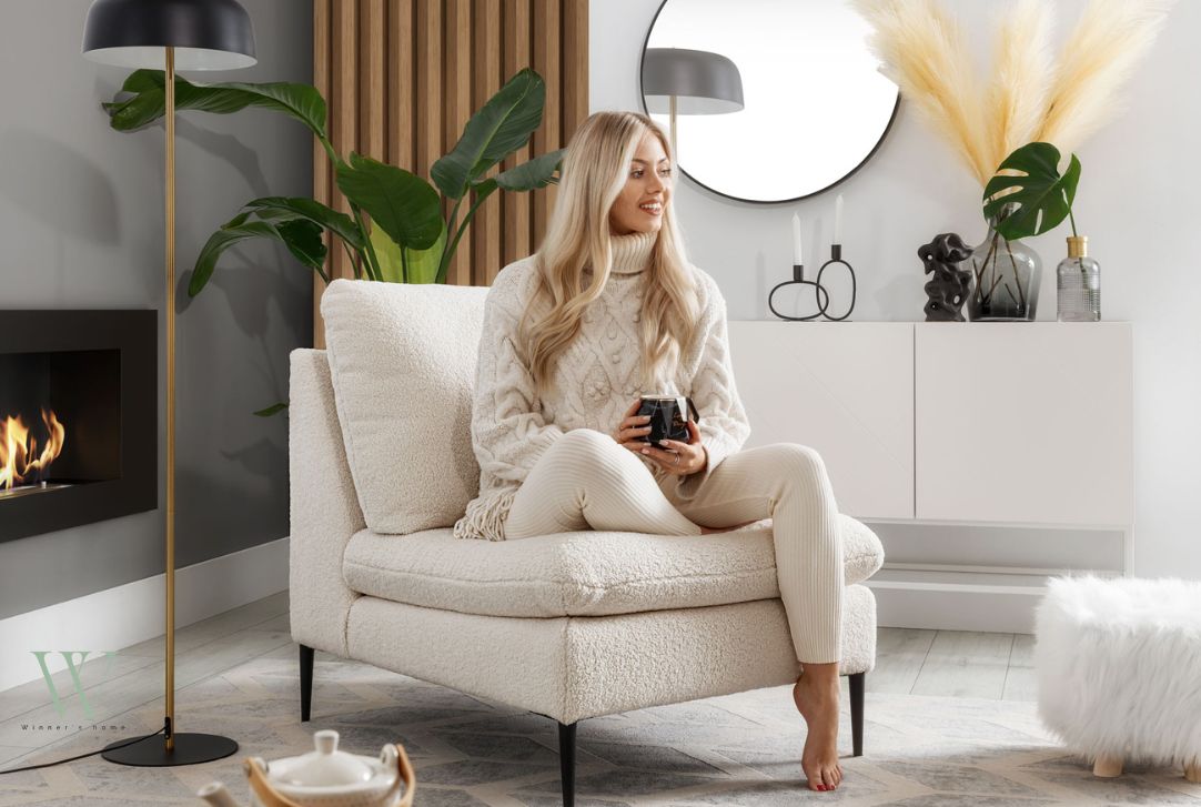L'assise confortable, recouverte de tissu bouclé, garantit un confort optimal. Ses pieds noirs apportent une touche minimaliste et élégante, parfait pour les intérieurs modernes et les espaces de travail contemporains.