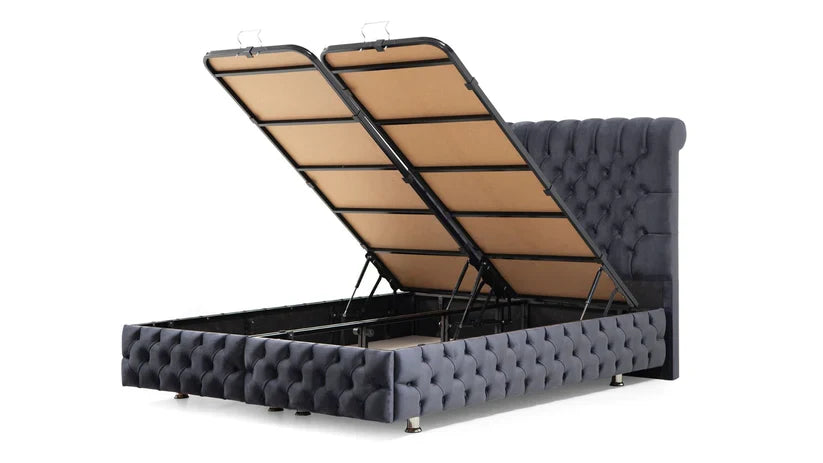 Découvrez notre lit coffre Luna relevable et doté d’un tissu de haute qualité. Son style ajoutera une touche de modernité en accord avec les tendances actuelles.