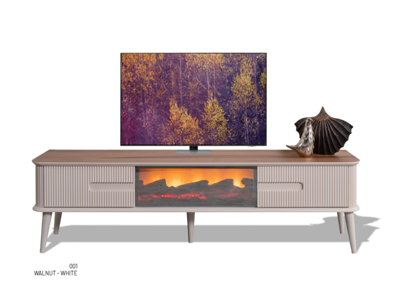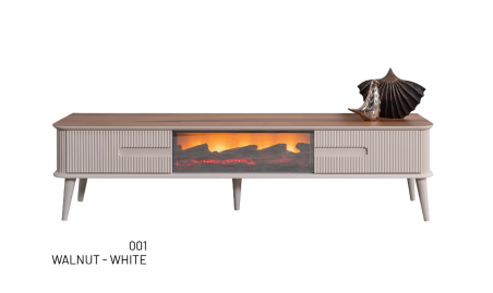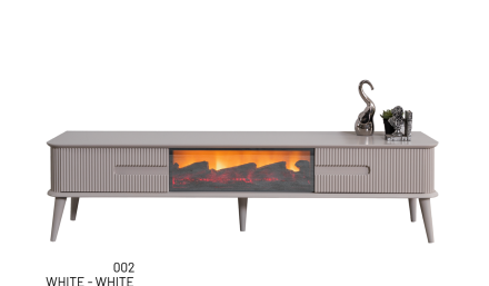 Apportez modernité et chaleur à votre salon avec le meuble télé Kosova blanc avec détails en bois clair. Ce meuble est équipé d’une enceinte Bluetooth et d’une cheminée LED réglable via télécommande de créer une ambiance chaleureuse et personnalisée selon vos envies. Son design élégant et ses matériaux de qualité en font un choix parfait pour un intérieur à la fois chic et fonctionnel.