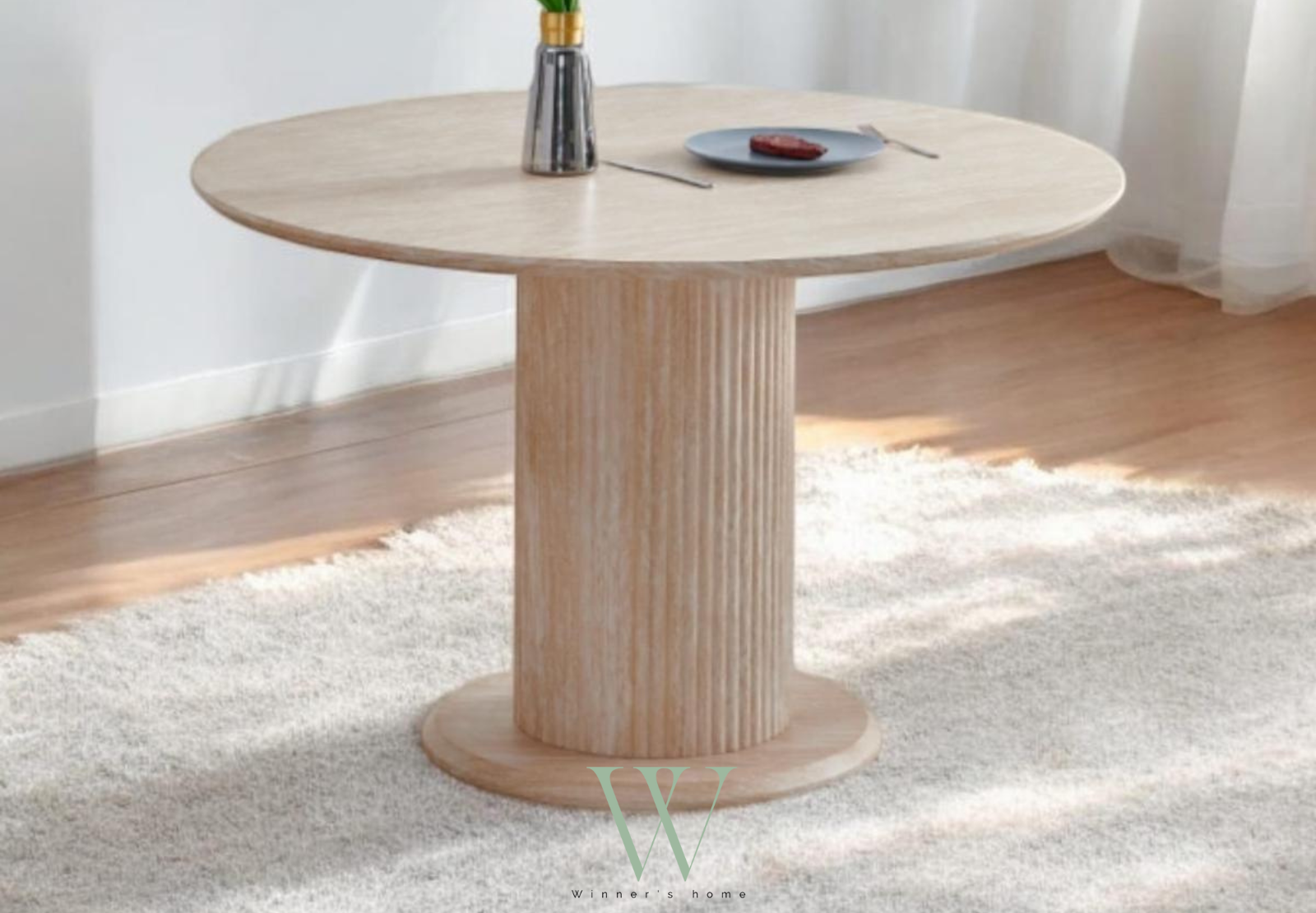 Table à manger Inna ronde (effet travertin)