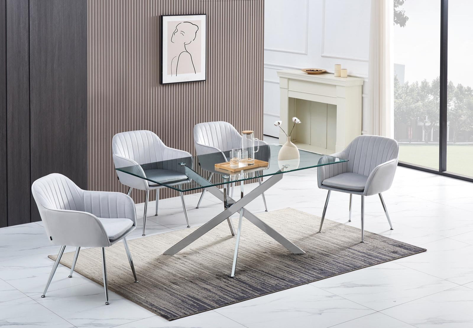 Offrez à votre salle à manger un look contemporain avec cette grande table rectangle en verre et pied chrome.