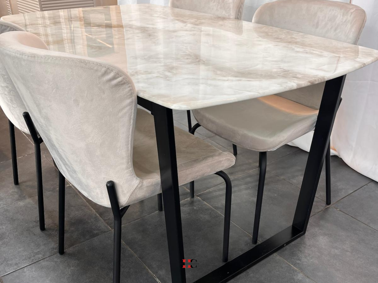 Transformez votre salle à manger en un espace élégant avec la table à manger Lola en marbre blanc ou beige. Son pied noir ajoute une touche de modernité tandis que son plateau en marbre apporte une touche de luxe. Parfait pour partager des repas en famille ou entre amis avec style et raffinement.