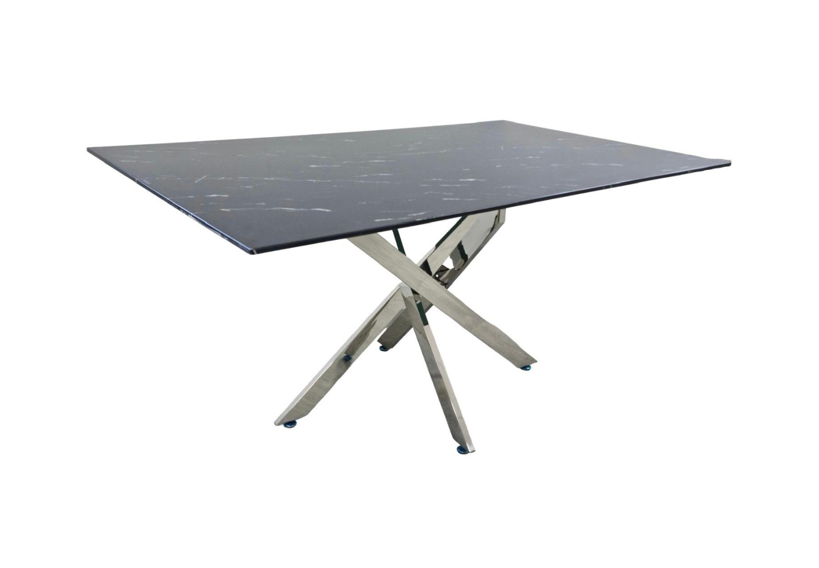 Le format rectangle du plateau s'adapte facilement à tous les espaces. Le piétement croisé donne au modèle une bonne stabilité. Les pieds chrome accentuent le côté moderne et élégant de la pièce.