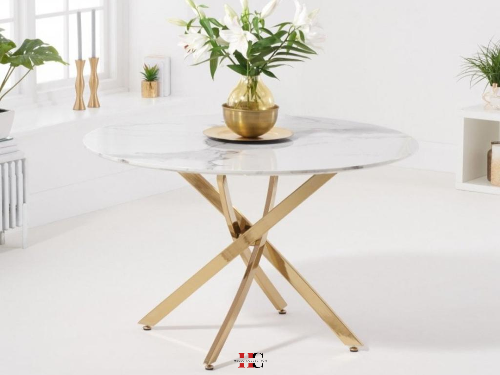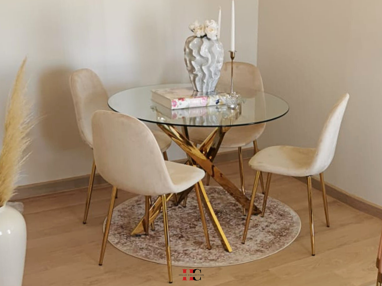 Offrez vous une élégante table à manger ronde Jessica en or pour des repas inoubliables ! Son design raffiné ajoute une touche de luxe à votre intérieur. Rassemblez vos proches autour de cette table pour des moments chaleureux et conviviaux.