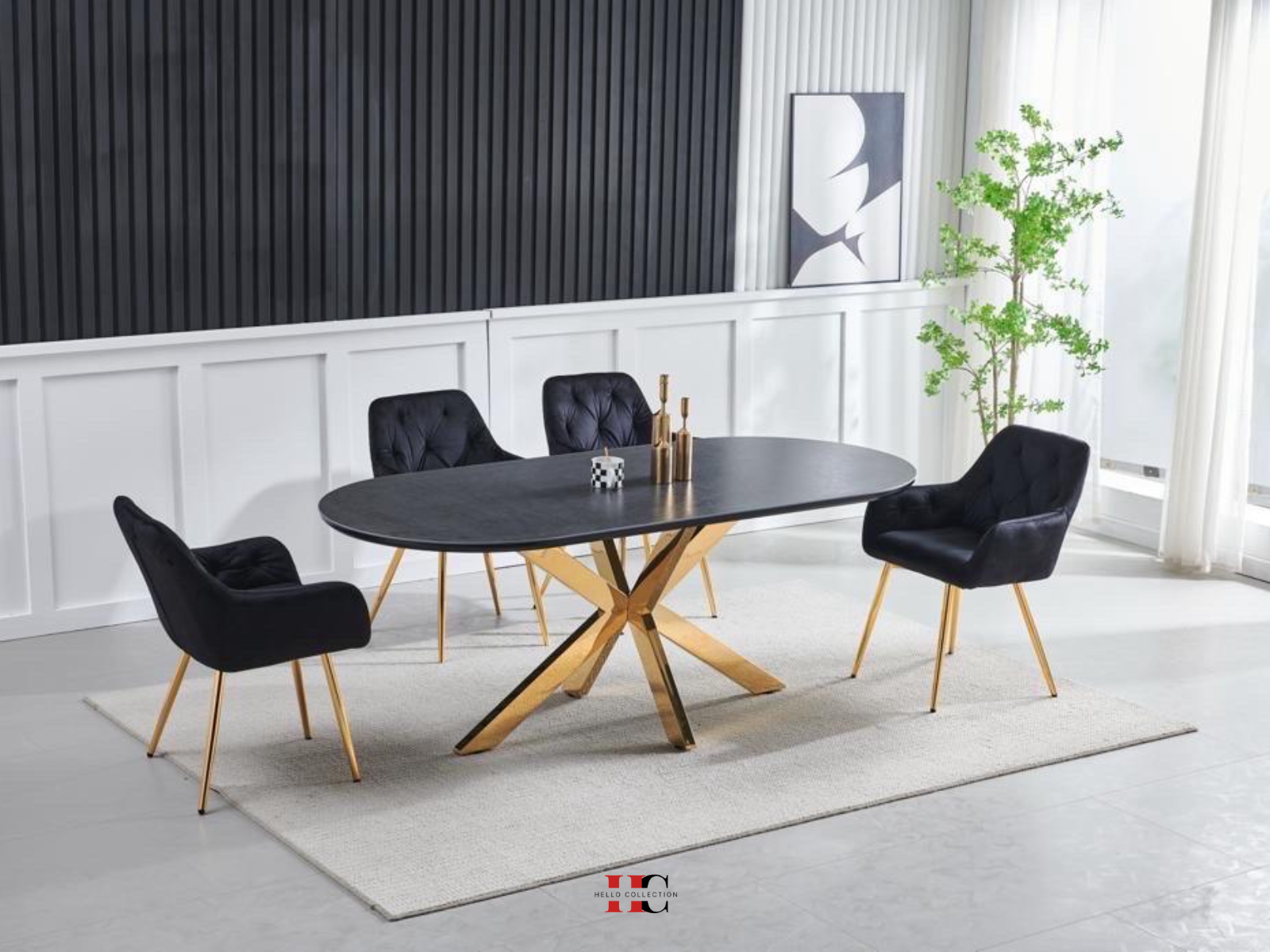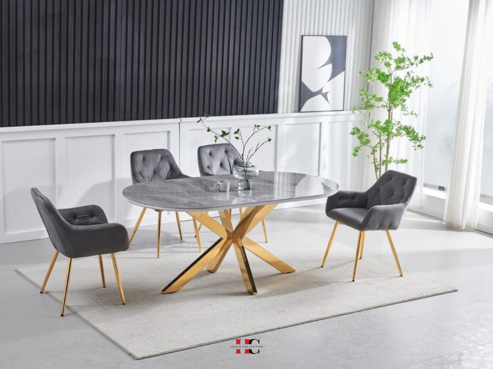 Transformez votre salle à manger en un endroit élégant et sophistiqué avec notre table à manger Ophelia en or. Son plateau en effet marbre ajoute une touche de luxe, tandis que sa couleur dorée apporte de la chaleur et de l'élégance à votre pièce. Invitez vos amis et votre famille à des dîners inoubliables autour de cette magnifique table!