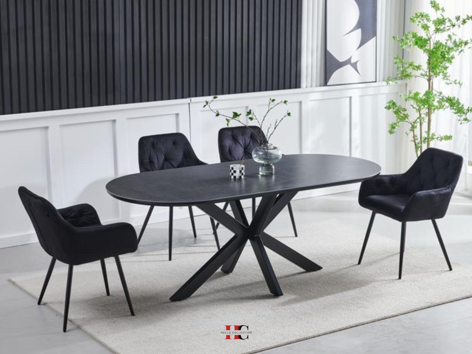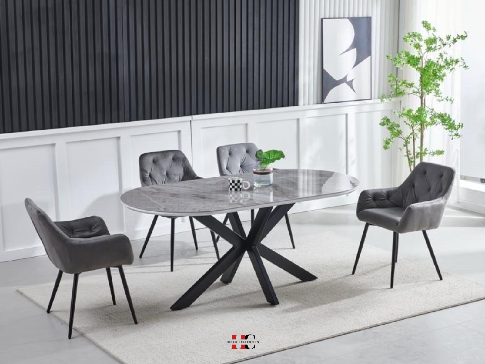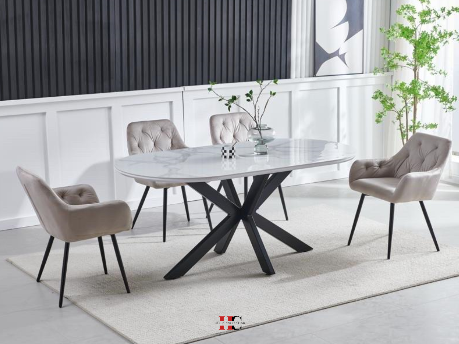 Offrez à votre salle à manger un look contemporain avec cette table effet marbre. Le format du plateau s'adapte facilement à tous les espaces.