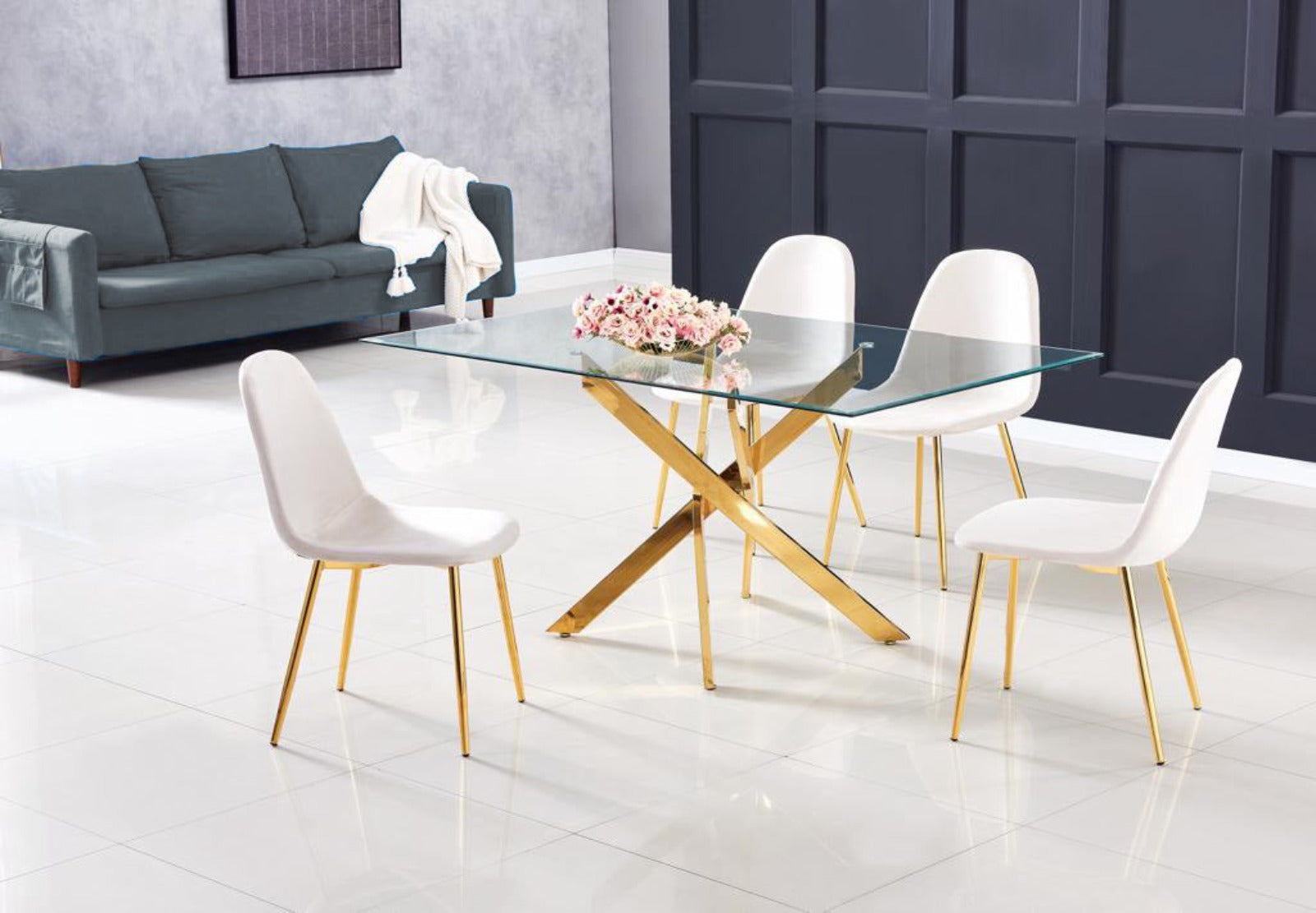 Offrez à votre salle à manger un look contemporain avec cette grande table rectangle effet marbre et pieds gold*.