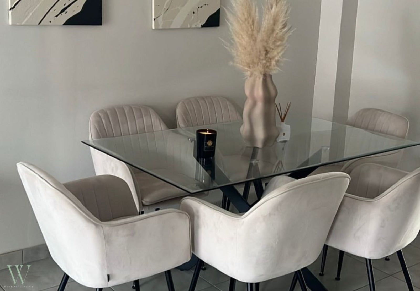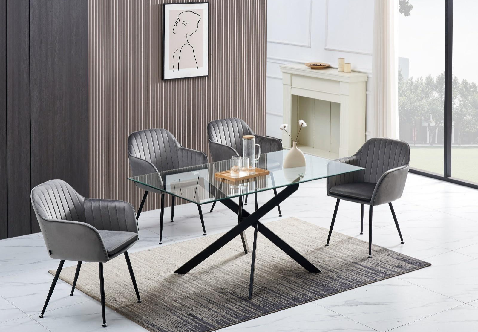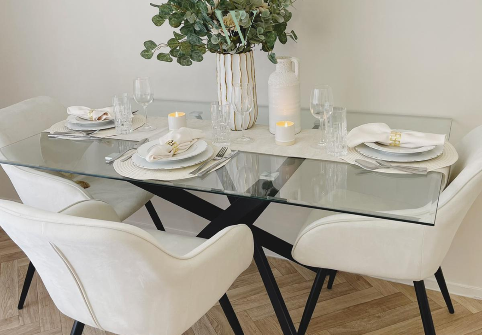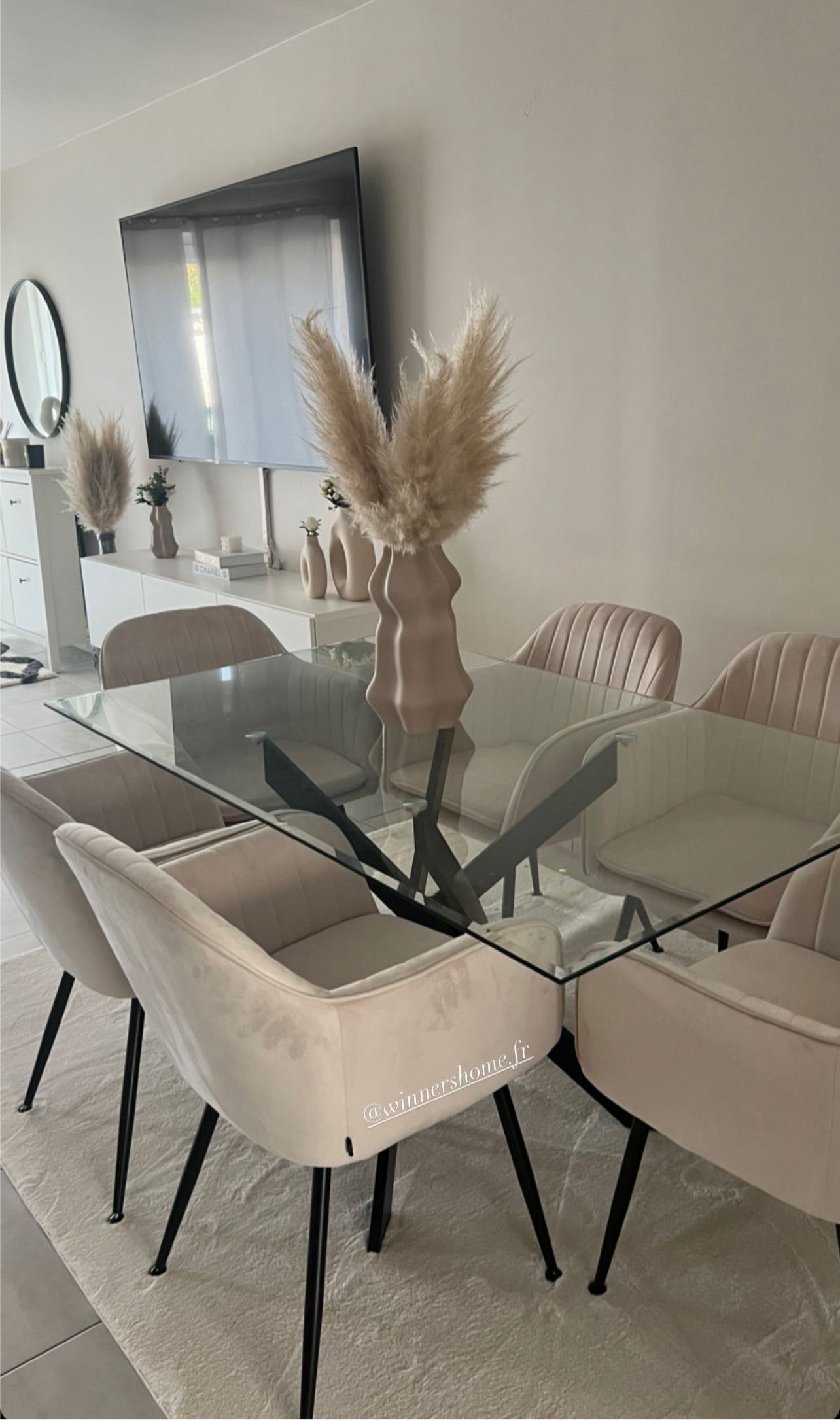 Offrez à votre salle à manger un look contemporain avec cette grande table rectangle en verre et pied noir*.
